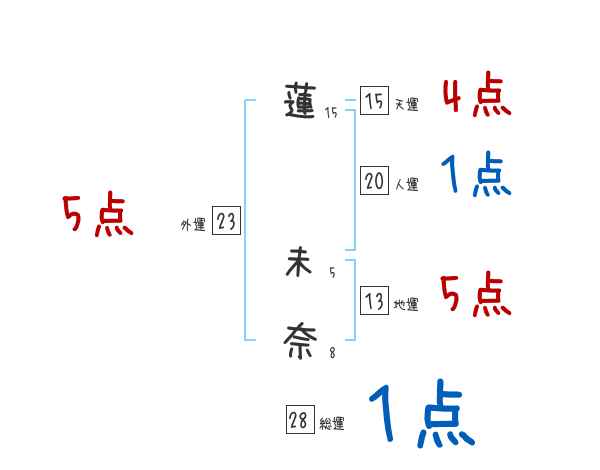 外運![]() | 蓮未奈さんの外運は23画の5つ星!想像力に優れ活力がある。一代で成功し名誉を手に入れる。 生活面を象徴する運勢です。外部から受ける影響力を表し、結婚運、家庭運や職場、環境への順応性を表します。 |