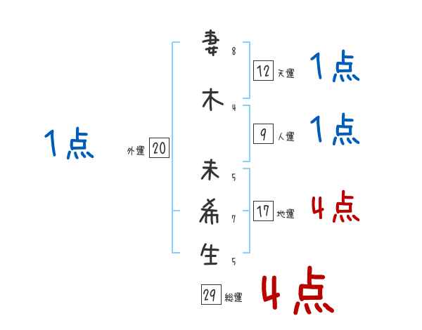 妻木未希生さんの画数の鑑定結果