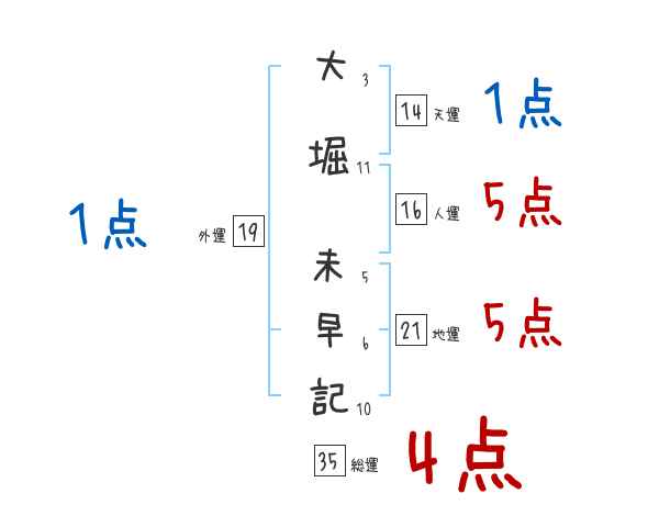 天運![]() | 大堀未早記さんの天運は14画の1つ星!人に対して優しいがストレスを溜め込みがち。人間関係のトラブルを避けるよう気をつけましょう。 家系が持つ宿命的な運勢を表します。祖先から受け継いだ苗字ですので自分の力が及びません。家柄を象徴します。 |