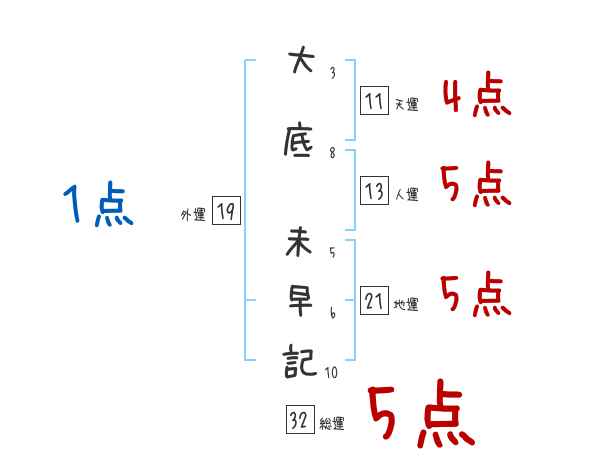 総運![]() | 大底未早記さんの総運は32画の5つ星!柔軟性があり成功する。チャンスが多く金運が良い。 あなたの人生を表す1番重要な運勢です。生涯を通じて影響する総合運となり、主に50歳以降の晩年期に影響を及ぼします。 |