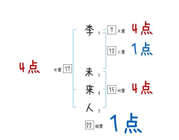 李未来人さんの画数の鑑定結果