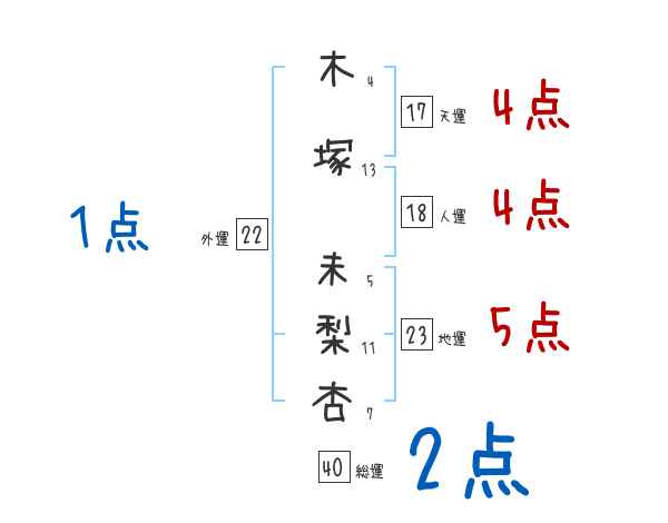 木塚未梨杏さんの画数の鑑定結果