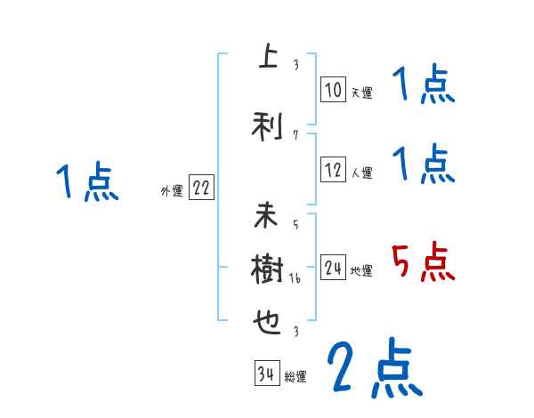 上利未樹也さんの画数の鑑定結果