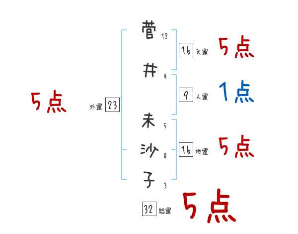 菅井未沙子さんの画数の鑑定結果