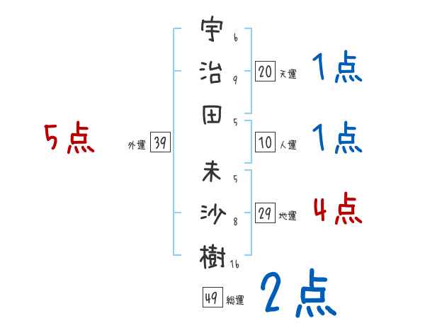 宇治田未沙樹さんの画数の鑑定結果