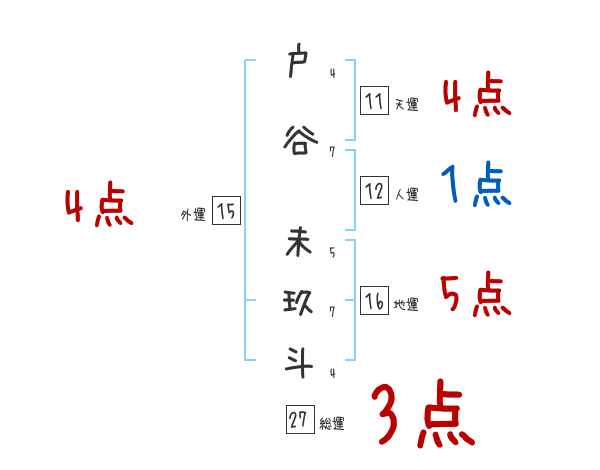 戸谷未玖斗さんの画数の鑑定結果