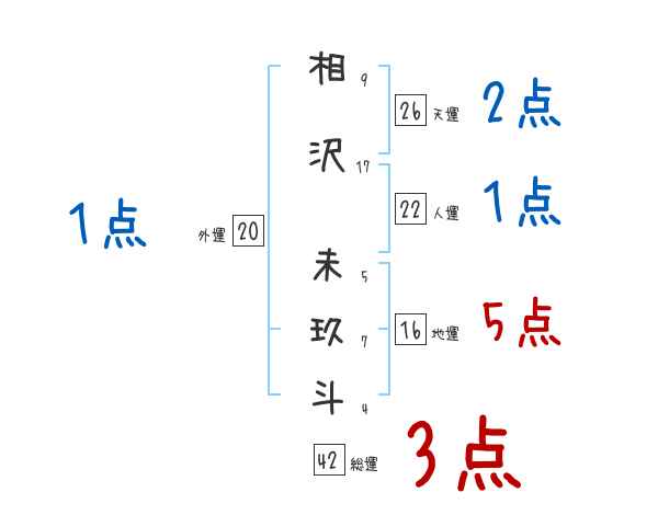 総運![]() | 相沢未玖斗さんの総運は42画の3つ星!病気に注意。多芸であるが消極的でおとなしい。 あなたの人生を表す1番重要な運勢です。生涯を通じて影響する総合運となり、主に50歳以降の晩年期に影響を及ぼします。 |