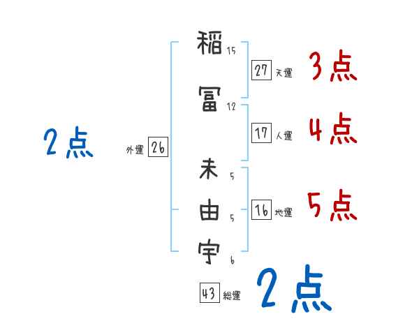 外運![]() | 稲冨未由宇さんの外運は26画の2つ星!波瀾万丈かも。信頼できる人を大事にしましょう。 生活面を象徴する運勢です。外部から受ける影響力を表し、結婚運、家庭運や職場、環境への順応性を表します。 |