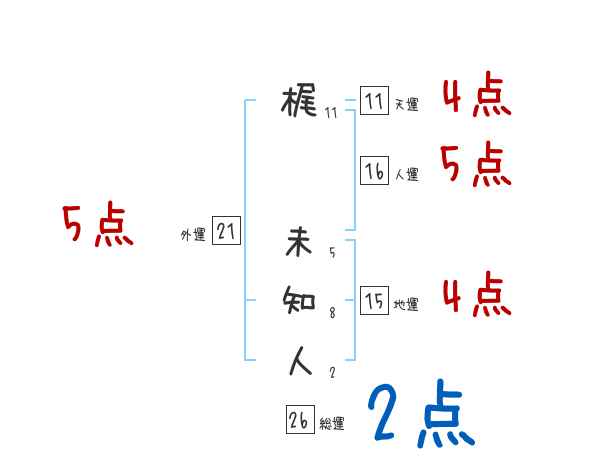 梶未知人さんの画数の鑑定結果