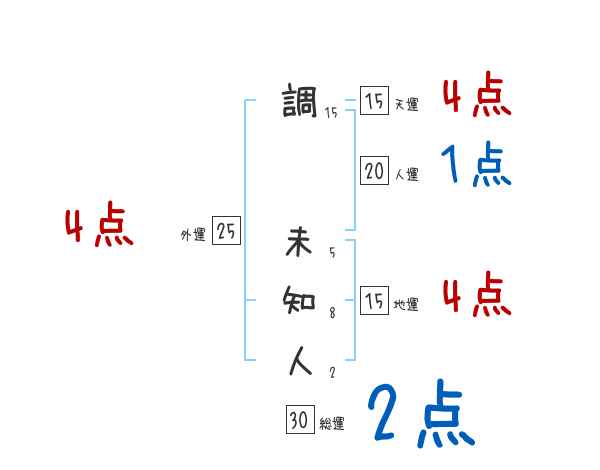 天運![]() | 調未知人さんの天運は15画の4つ星!人徳があり出世する。順調に物事を進め円満な人生。 家系が持つ宿命的な運勢を表します。祖先から受け継いだ苗字ですので自分の力が及びません。家柄を象徴します。 |