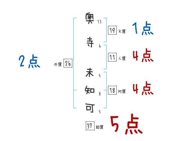 奥寺未知可さんの画数の鑑定結果