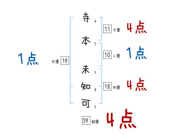家系が持つ宿命的な運勢を表します。祖先から受け継いだ苗字ですので自分の力が及びません。家柄を象徴します。