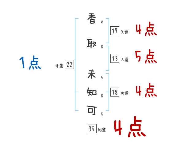 香取未知可さんの画数の鑑定結果