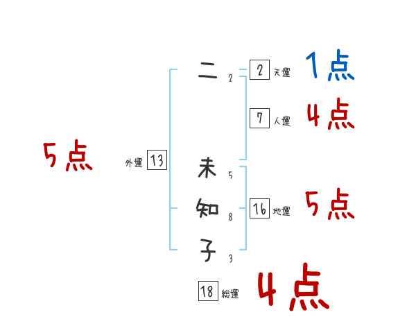 二未知子さんの画数の鑑定結果