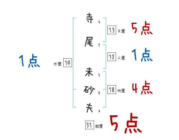 寺尾未砂夫さんの画数の鑑定結果