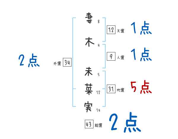 天運![]() | 妻木未菜実さんの天運は12画の1つ星!簡単な失敗で諦めてしまいやすいかも。着実に行動すると良いでしょう。 家系が持つ宿命的な運勢を表します。祖先から受け継いだ苗字ですので自分の力が及びません。家柄を象徴します。 |