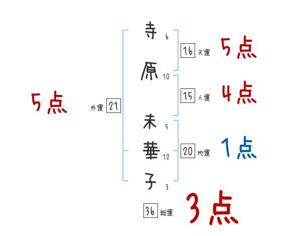 寺原未華子さんの画数の鑑定結果