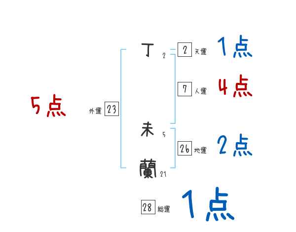 丁未蘭さんの画数の鑑定結果