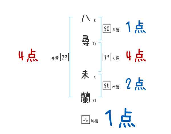 八尋未蘭さんの画数の鑑定結果