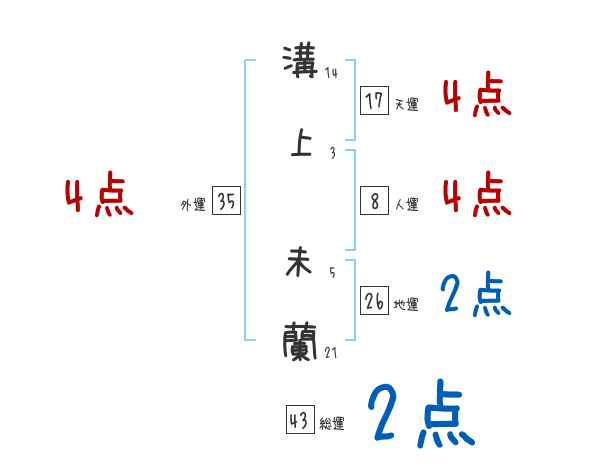 溝上未蘭さんの画数の鑑定結果