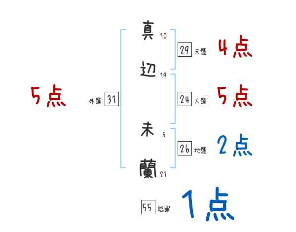 真辺未蘭さんの画数の鑑定結果