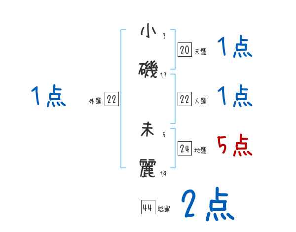 小磯未麗さんの画数の鑑定結果