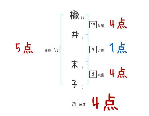 楡井末子さんの画数の鑑定結果