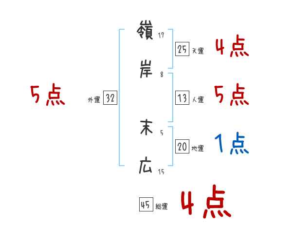 嶺岸末広さんの画数の鑑定結果