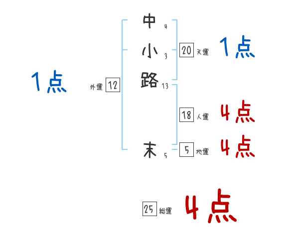 天運![]() | 中小路末さんの天運は20画の1つ星!社交が苦手。人とは違った才能があり波乱万丈な人生かも。 家系が持つ宿命的な運勢を表します。祖先から受け継いだ苗字ですので自分の力が及びません。家柄を象徴します。 |