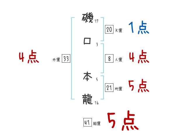 磯口本龍さんの画数の鑑定結果