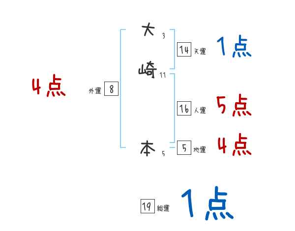 大崎本さんの画数の鑑定結果