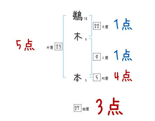 鵜木本さんの画数の鑑定結果