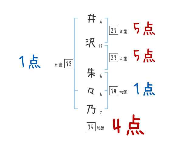 総運![]() | 井沢朱々乃さんの総運は35画の4つ星!温厚な性格で感受性が高い。穏和な性格で人望が厚い。 あなたの人生を表す1番重要な運勢です。生涯を通じて影響する総合運となり、主に50歳以降の晩年期に影響を及ぼします。 |