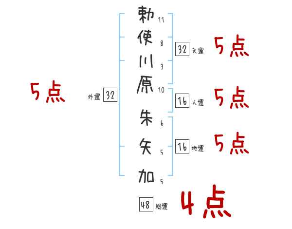 外運![]() | 勅使川原朱矢加さんの外運は32画の5つ星!柔軟性があり成功する。チャンスが多く金運が良い。 生活面を象徴する運勢です。外部から受ける影響力を表し、結婚運、家庭運や職場、環境への順応性を表します。 |