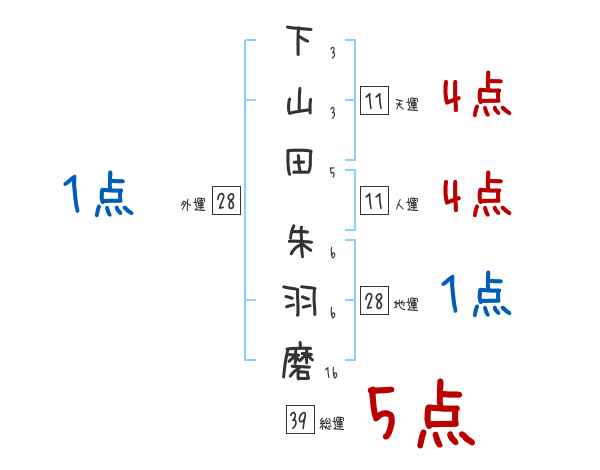 下山田朱羽磨さんの画数の鑑定結果