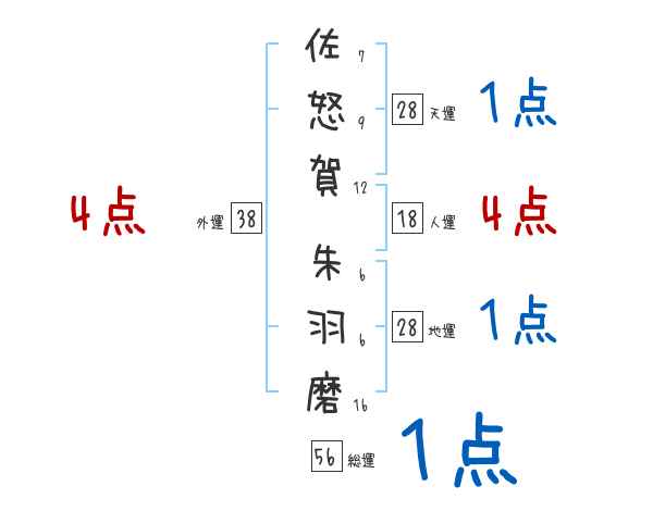 佐怒賀朱羽磨さんの画数の鑑定結果
