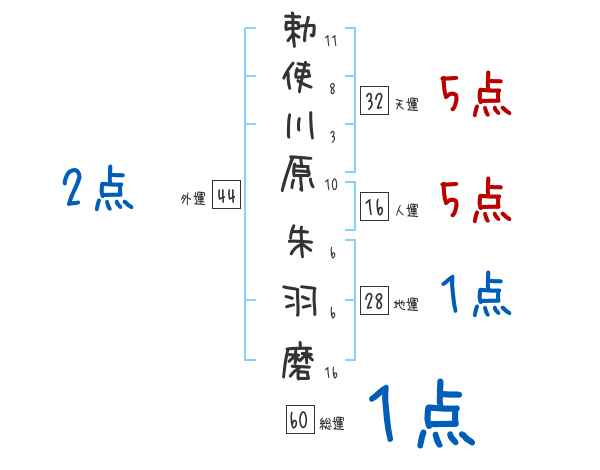 天運![]() | 勅使川原朱羽磨さんの天運は32画の5つ星!柔軟性があり成功する。チャンスが多く金運が良い。 家系が持つ宿命的な運勢を表します。祖先から受け継いだ苗字ですので自分の力が及びません。家柄を象徴します。 |