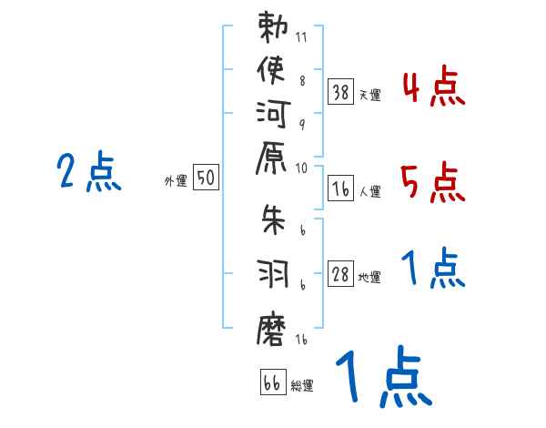勅使河原朱羽磨さんの総運は66画の1つ星