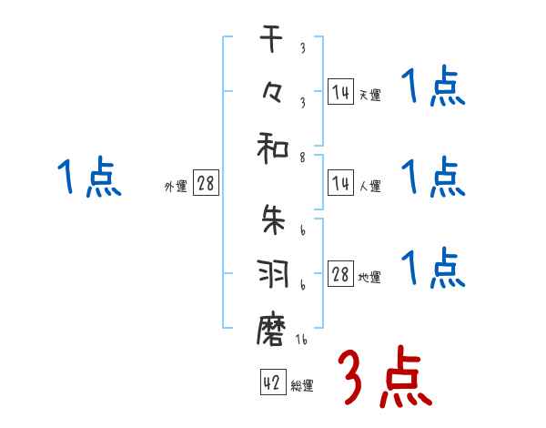 総運![]() | 千々和朱羽磨さんの総運は42画の3つ星!病気に注意。多芸であるが消極的でおとなしい。 あなたの人生を表す1番重要な運勢です。生涯を通じて影響する総合運となり、主に50歳以降の晩年期に影響を及ぼします。 |