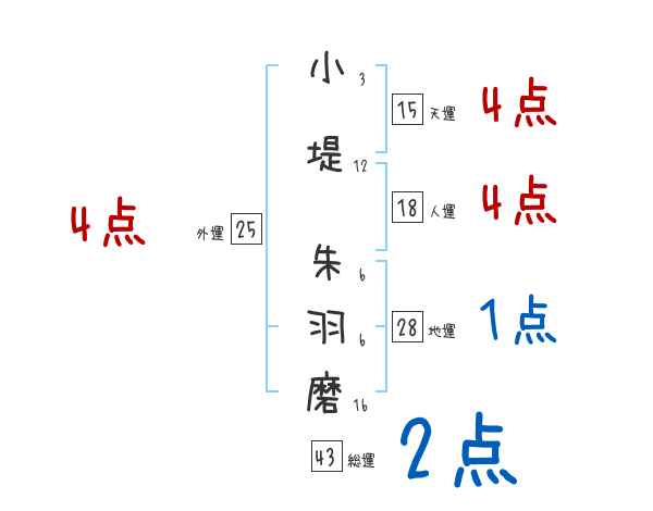 天運![]() | 小堤朱羽磨さんの天運は15画の4つ星!人徳があり出世する。順調に物事を進め円満な人生。 家系が持つ宿命的な運勢を表します。祖先から受け継いだ苗字ですので自分の力が及びません。家柄を象徴します。 |
