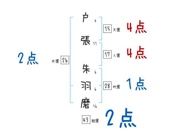 地運![]() | 戸張朱羽磨さんの地運は28画の1つ星!家庭環境に注意。スポーツで活躍できる能力があるかも。 個性を表す基礎的な運勢です。性格形成や対人関係、行動力など家庭環境に影響されます。主に誕生してから20歳くらいまでの若年期の運勢を表します。 |