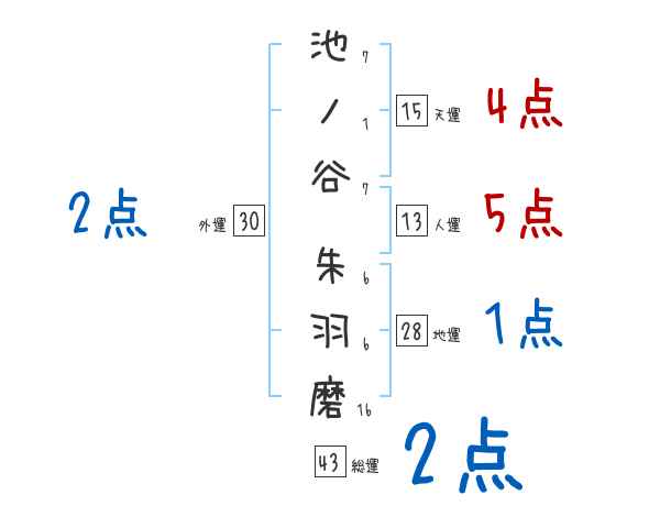 池ノ谷朱羽磨さんの画数の鑑定結果