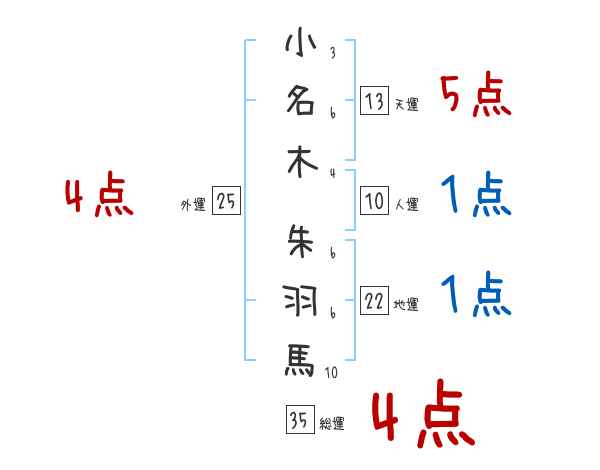 小名木朱羽馬さんの画数の鑑定結果
