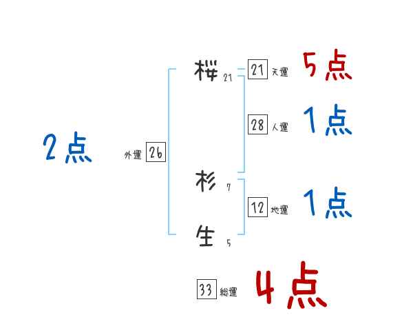 桜杉生さんの画数の鑑定結果