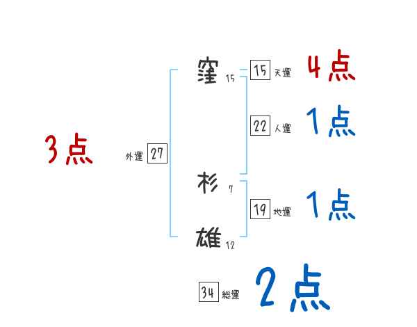 窪杉雄さんの画数の鑑定結果