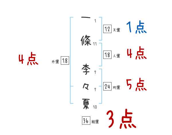 一條李々夏さんの画数の鑑定結果