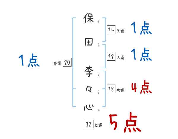 保田李々心さんの画数の鑑定結果