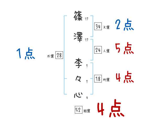 外運![]() | 篠澤李々心さんの外運は28画の1つ星!家庭環境に注意。スポーツで活躍できる能力があるかも。 生活面を象徴する運勢です。外部から受ける影響力を表し、結婚運、家庭運や職場、環境への順応性を表します。 |