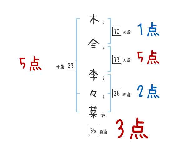 総運![]() | 木全李々菜さんの総運は36画の3つ星!先見性が豊かです。多少神経質で苦労することも。 あなたの人生を表す1番重要な運勢です。生涯を通じて影響する総合運となり、主に50歳以降の晩年期に影響を及ぼします。 |