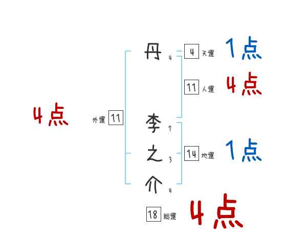 丹李之介さんの画数の鑑定結果